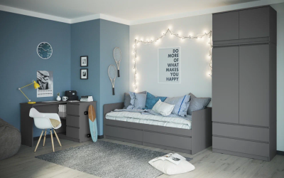 Модульная детская Челси — серия молодежной мебели в современном стиле, одинаково подходящей как для девочек, так и мальчиков-подростков. Модули функциональны и совмещают различные элементы для хранения вещей.