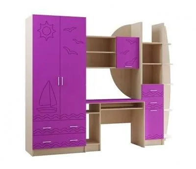 Набор необходимой детской мебели. Изготовлен с соблюдением всех необходимых требований к экологичности и функциональности. В модели использована крепкая и надежная фурнитура.