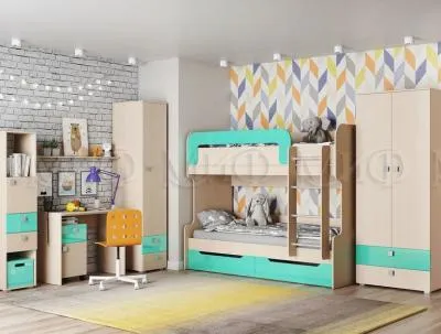 Модульная детская Юниор-1 — практичная мебель для детской комнаты. Оптимизирует пространство, формирует комфортную среду для занятий и игр. Выполнена в приятных спокойных тонах. Правильный выбор заботливых родителей.