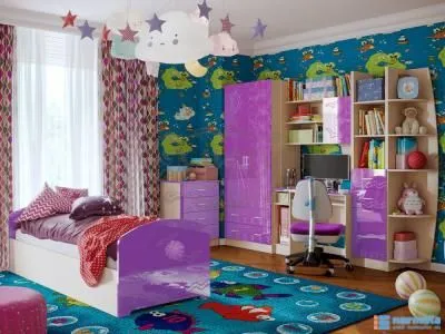 Набор необходимой детской мебели. Изготовлен с соблюдением всех необходимых требований к экологичности и функциональности. В модели использована крепкая и надежная фурнитура.
