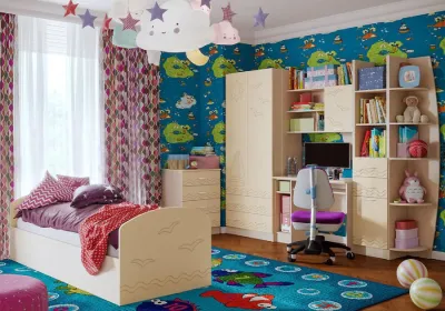 Набор необходимой детской мебели. Изготовлен с соблюдением всех необходимых требований к экологичности и функциональности. В модели использована крепкая и надежная фурнитура.