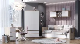 Линейка «Челси» может похвастать разнообразием модулей, с помощью которых можно обустроить комфортную детскую комнату для любого жилья, будь то просторный частный дом или малогабаритная квартира в хрущевке. В «стандартной» компоновке речь идет о: