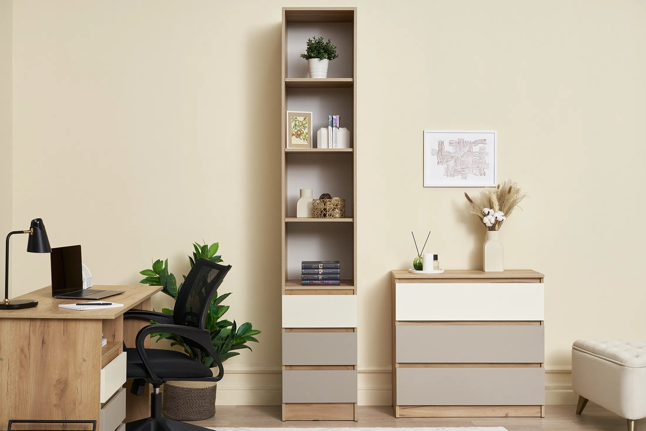 Каждый элемент комплекта изготовлен из высококачественного ЛДСП, что гарантирует долговечность и безопасность. Цветовая палитра и дизайн мебели линейки Челси Color создают ощущение единства и уюта, облегчая организацию пространства и поддержание порядка. Этот комплект — прекрасный выбор для современной детской комнаты, где каждый элемент способствует развитию и комфорту ребенка.