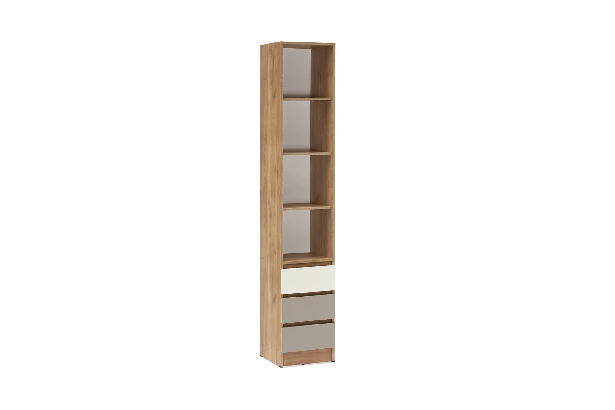 Пенал (400х400х2200) Внутреннее пространство стеллажа составляют три полки для книг или игрушек. Для дополнительного удобства в нижней части пенала предусмотрены три ящика, которые могут быть использованы для хранения игрушек, книг или школьных принадлежностей, делая их легкодоступными