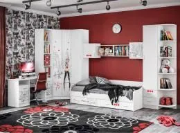 Дизайн модульной мебели для детской комнаты разработан с учетом предпочтений подростков, а расцветка нацелена на девочек. «Стандартная» комплектация состоит из: