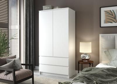 Челси Шкаф 2-х створчатый комбинированый — распашной шкаф с 2 дверьми, за которыми расположены секция со штангой и секция с 3 полками, и 2 ящиками. Материал шкафа — ЛДСП, Размер 902х1796х514 мм