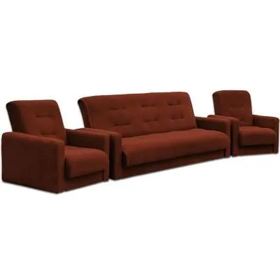 В комплект мягкой мебели входят: диван-книжка со спальным место 120х190 , а также два кресла для отдыха с габаритным размером 90х78 каждое.