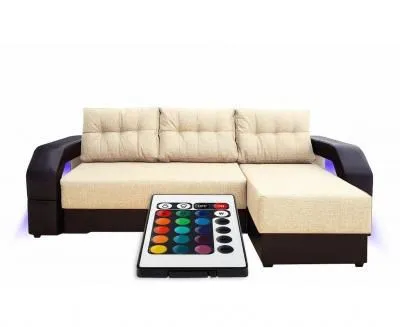 Угловой диван Манчестер выполненный в стиле минимализм, современный, модерн, хай тек оснащен оригинальными подлокотниками с подсветкой.