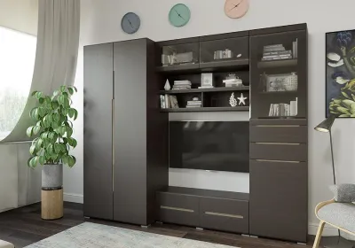 Гостиная "Эколь" создает динамичный и в тоже время уютный дизайн, не загружая помещение. Выбор подходящей для вас цветовой гаммы сделает интерьер комнаты гармоничным.