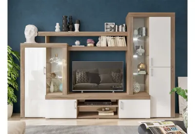 Изящная и легкая гостиная "Стас" завораживает своей элегантностью. В сочетании дуб сонома/белый выглядит нежной и романтичной, темные фасады придают гостиной строгость и брутальность.