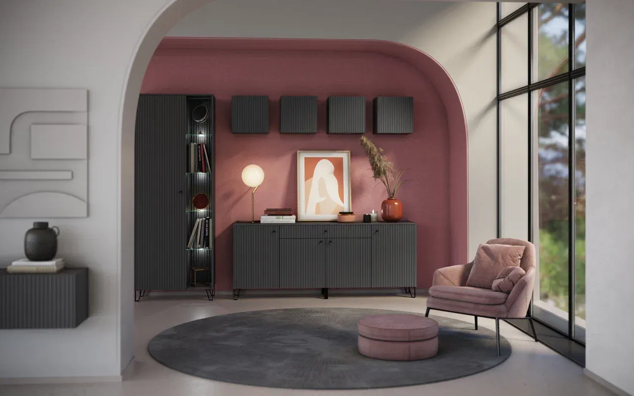 • Гостиная Роджина Графит софт/Дуб крафт белый