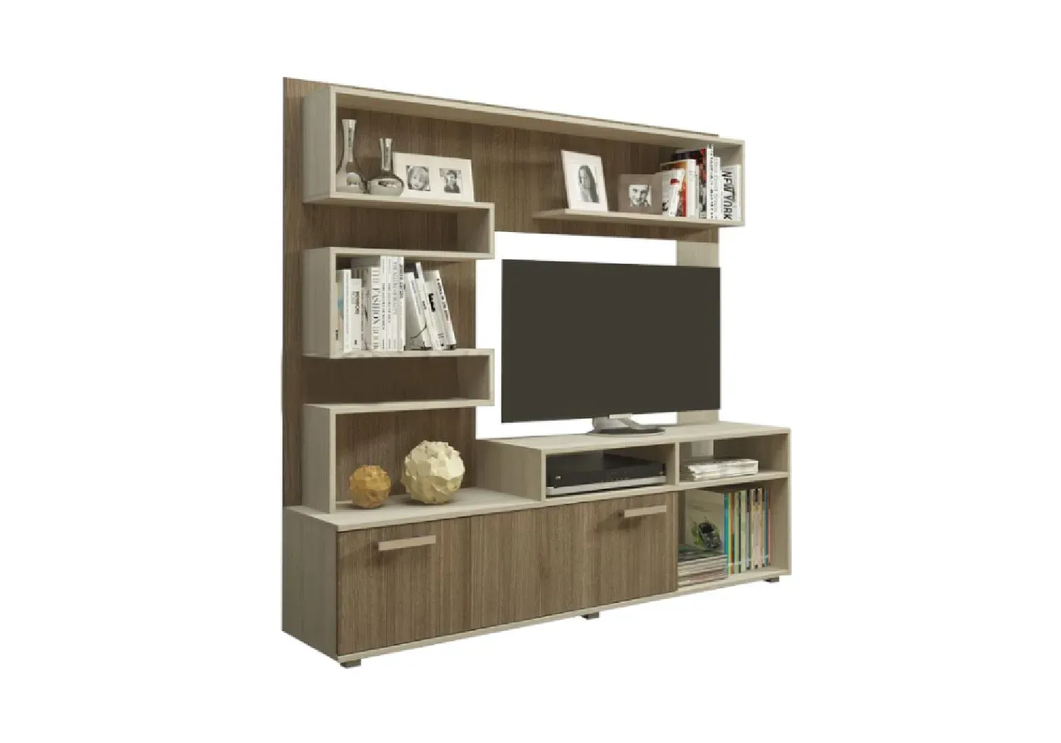 Воплощает в себе элегантность и функциональность. Красивая и асимметричная, она выглядит весьма эффектно. Основное предназначение – установка видео-аудио техники. Для современной гостиной в классическом стиле.