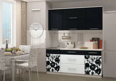 Кухня Маки красные шириной 1800 мм представляет собой эффектная и недорогой комплект шкафов и ящиков с гладкой и широкой столешницей, местом для мойки (раковина приобретается отдельно) и шкафчиком для сушки.