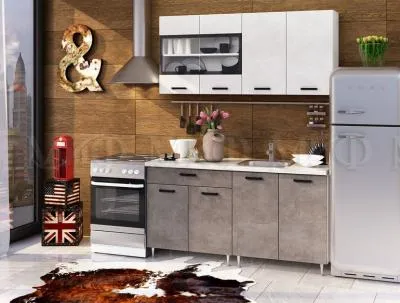 Каркас кухни выполнен из ЛДСП белого цвета. Фасады ЛДСП бетон светлый и тёмный.