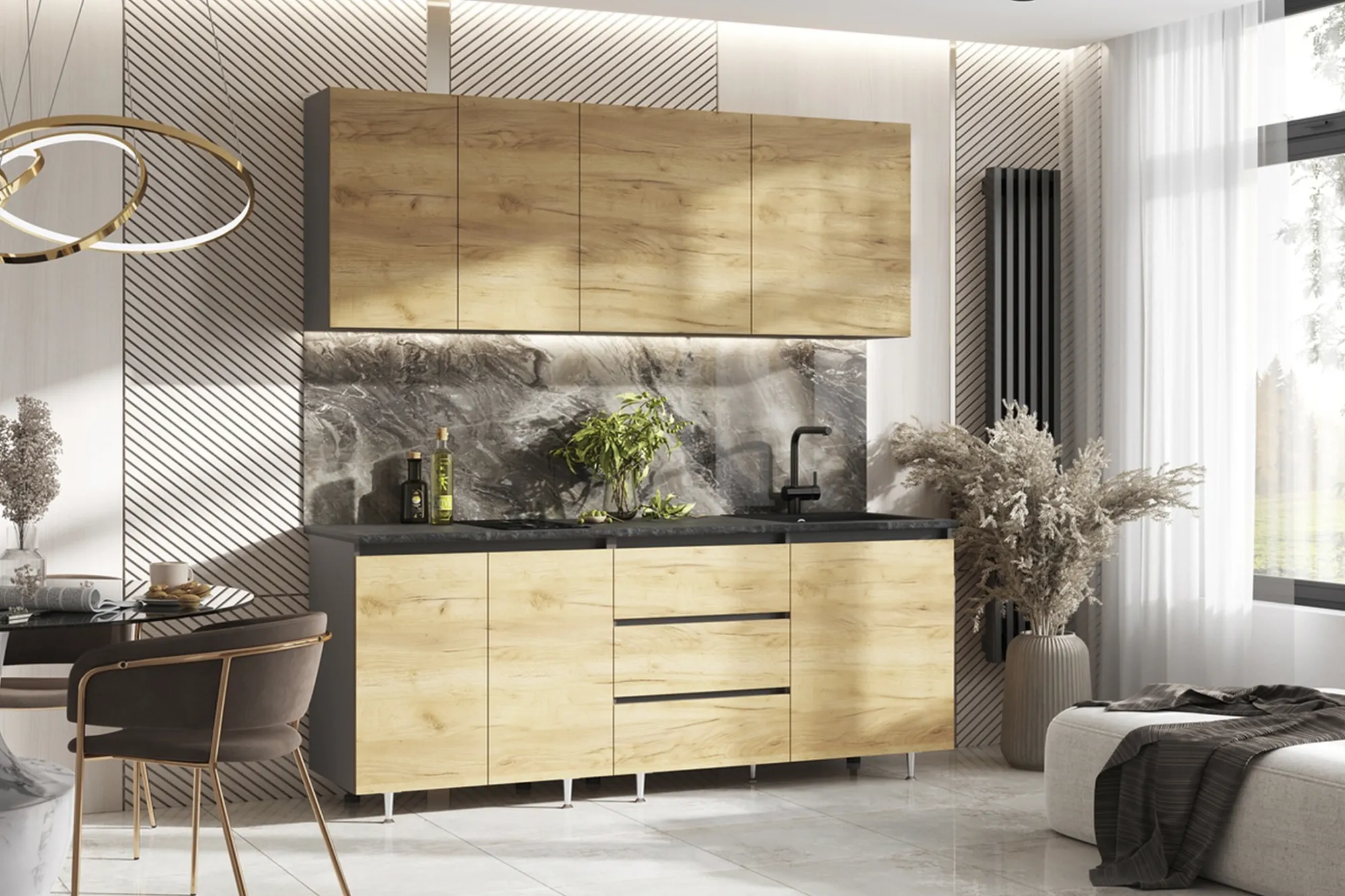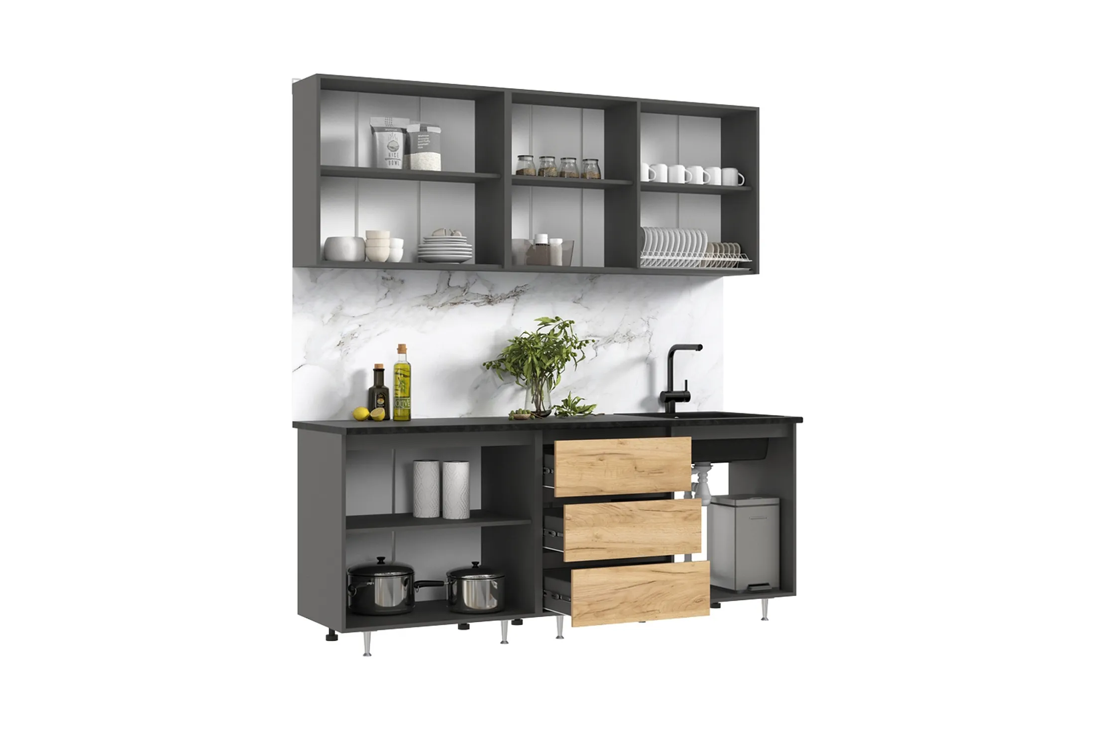 Высота нижних модулей указана с учетом столешницы.