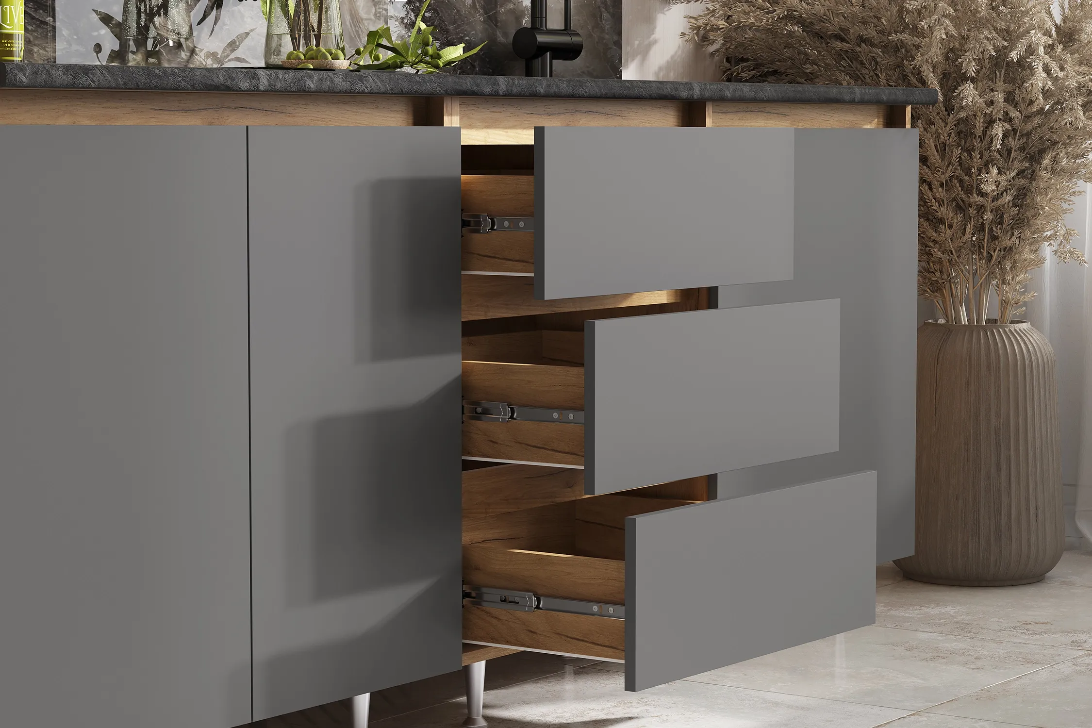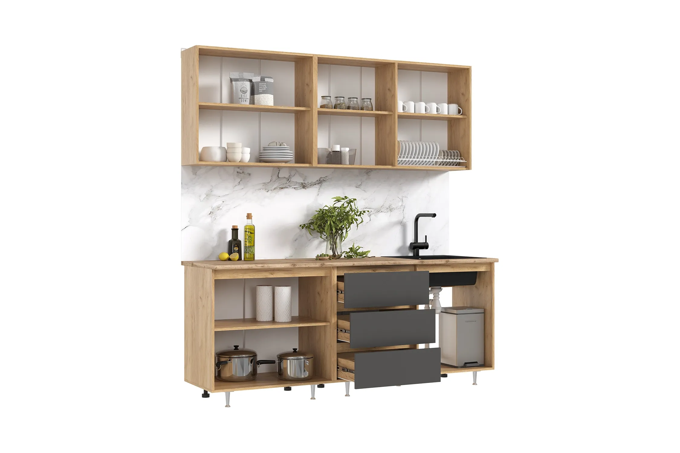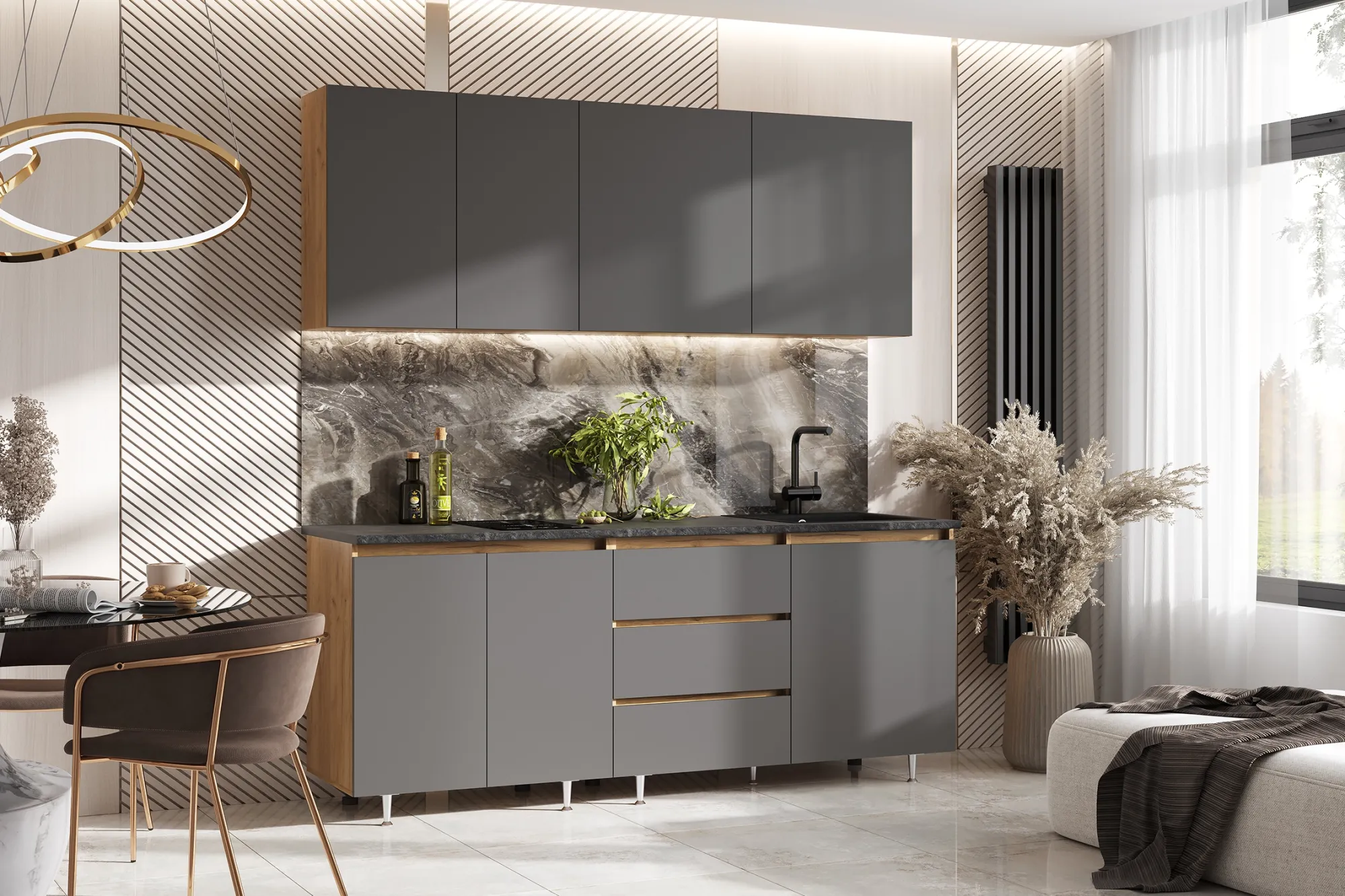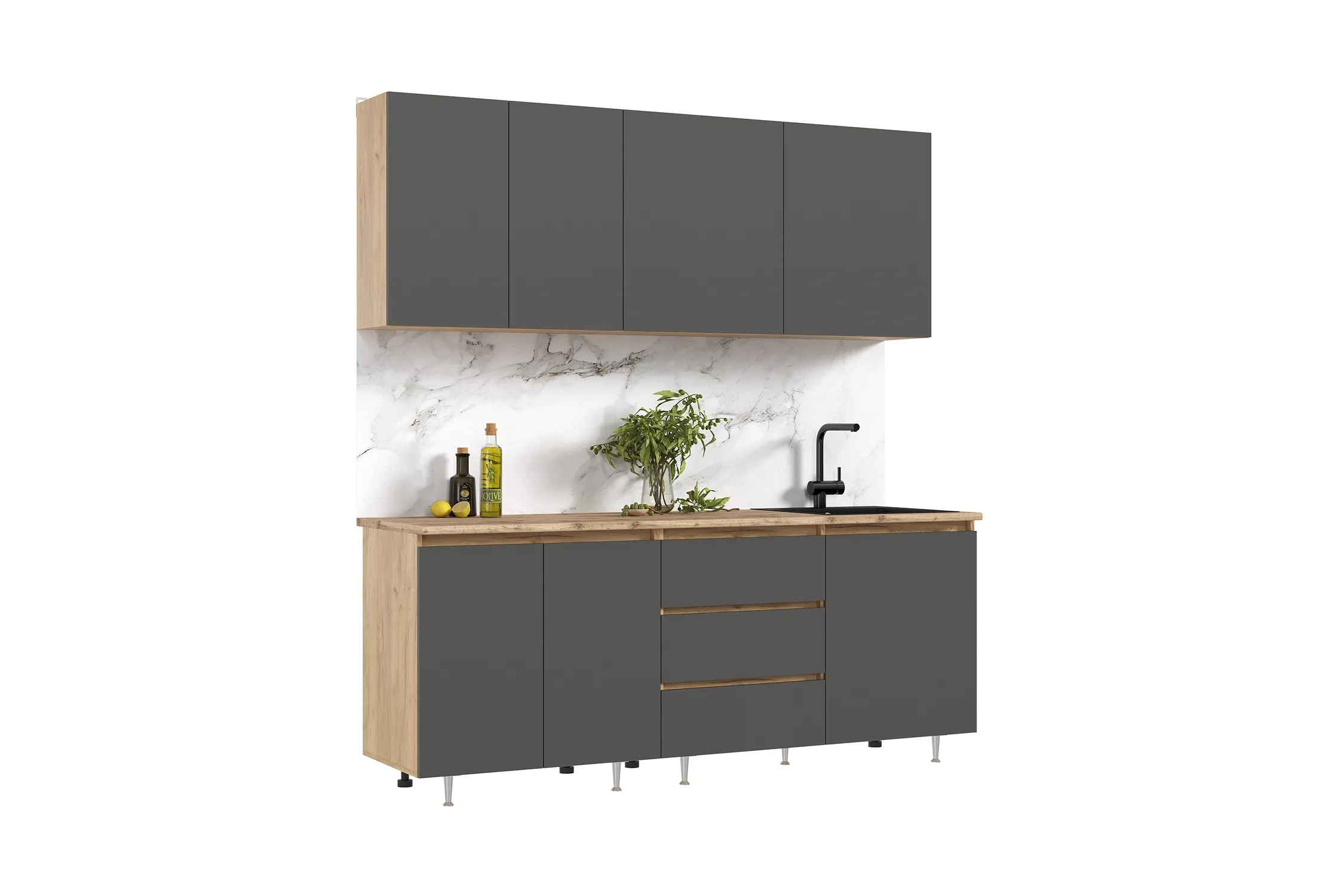 Высота нижних модулей указана с учетом столешницы.