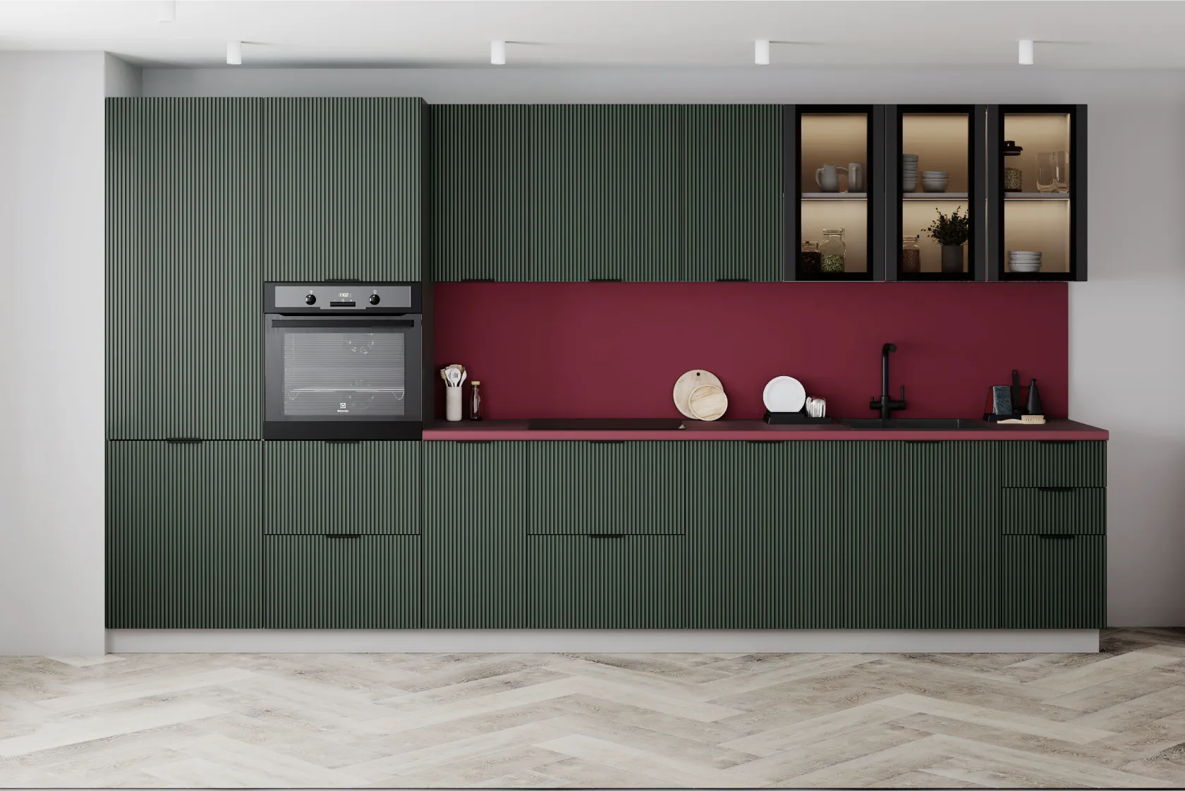 Кухонный гарнитур «Фенис» — изящное воплощение функциональности и стиля, используемые в ее производстве пленки с 3D эффектом, превосходят ожидания владельцев, а насыщенные оттенки придали модулям яркости и контраста.