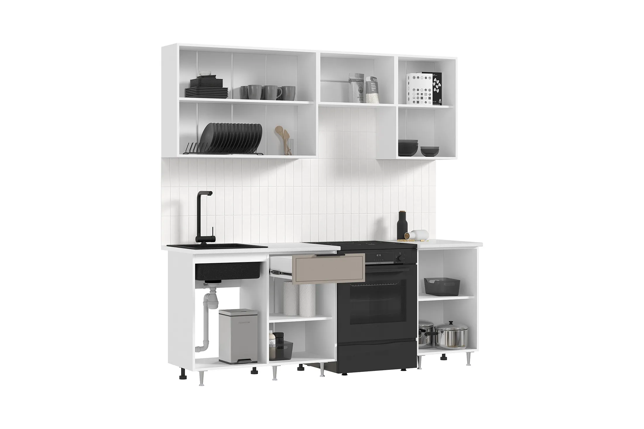 Высота нижних кухонных модулей указана без учета столешницы.