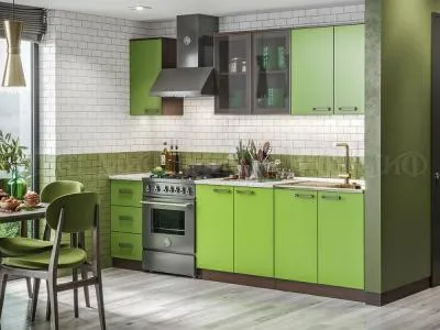 Кухонный гарнитур «Олива» не зря носит такое название. Строгая геометрическая форма шкафчиков и элегантная расцветка будут приковывать взгляды гостей.