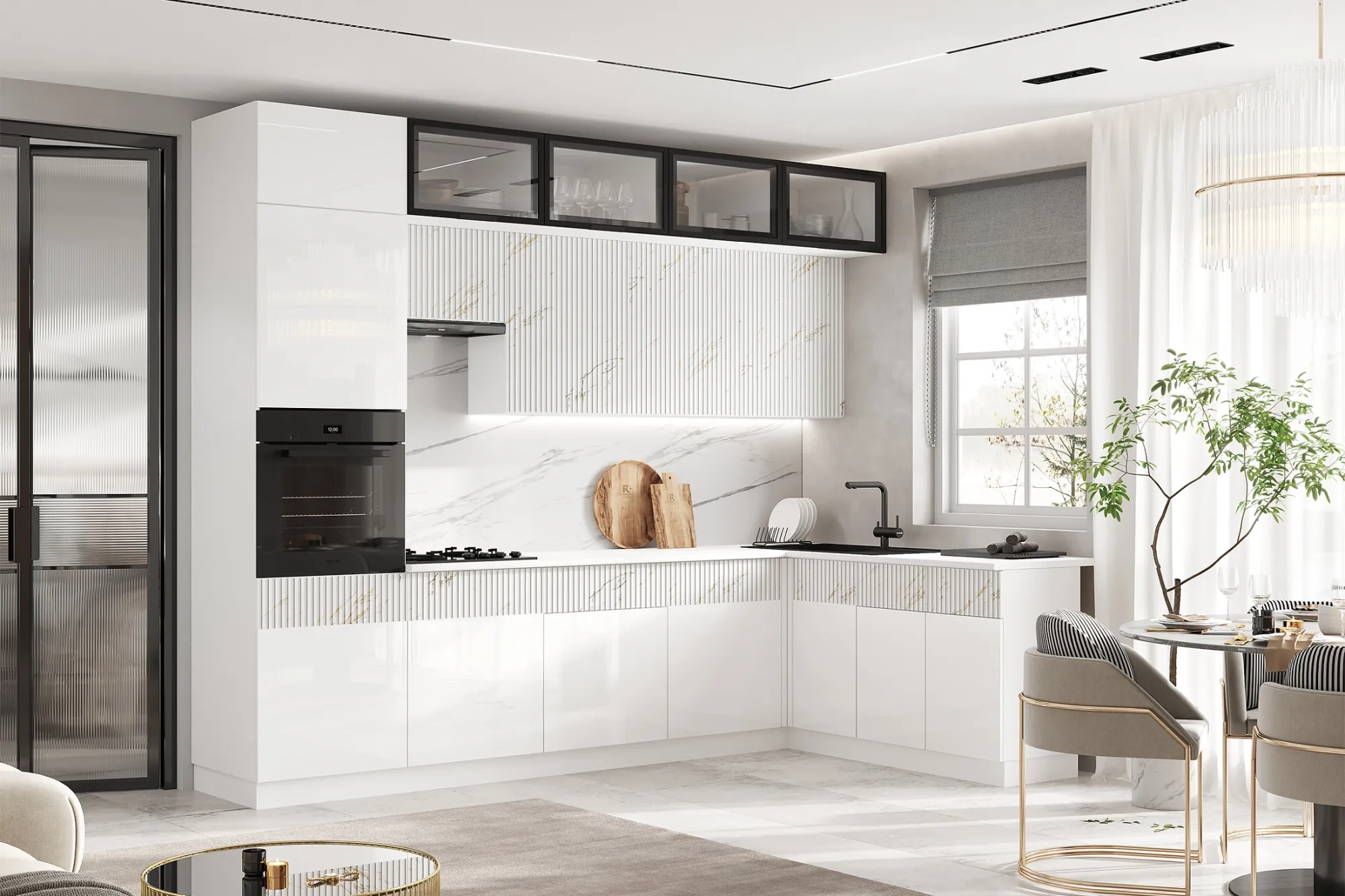 Цвет фасада: Белый глянец холодный / Мрамор золото