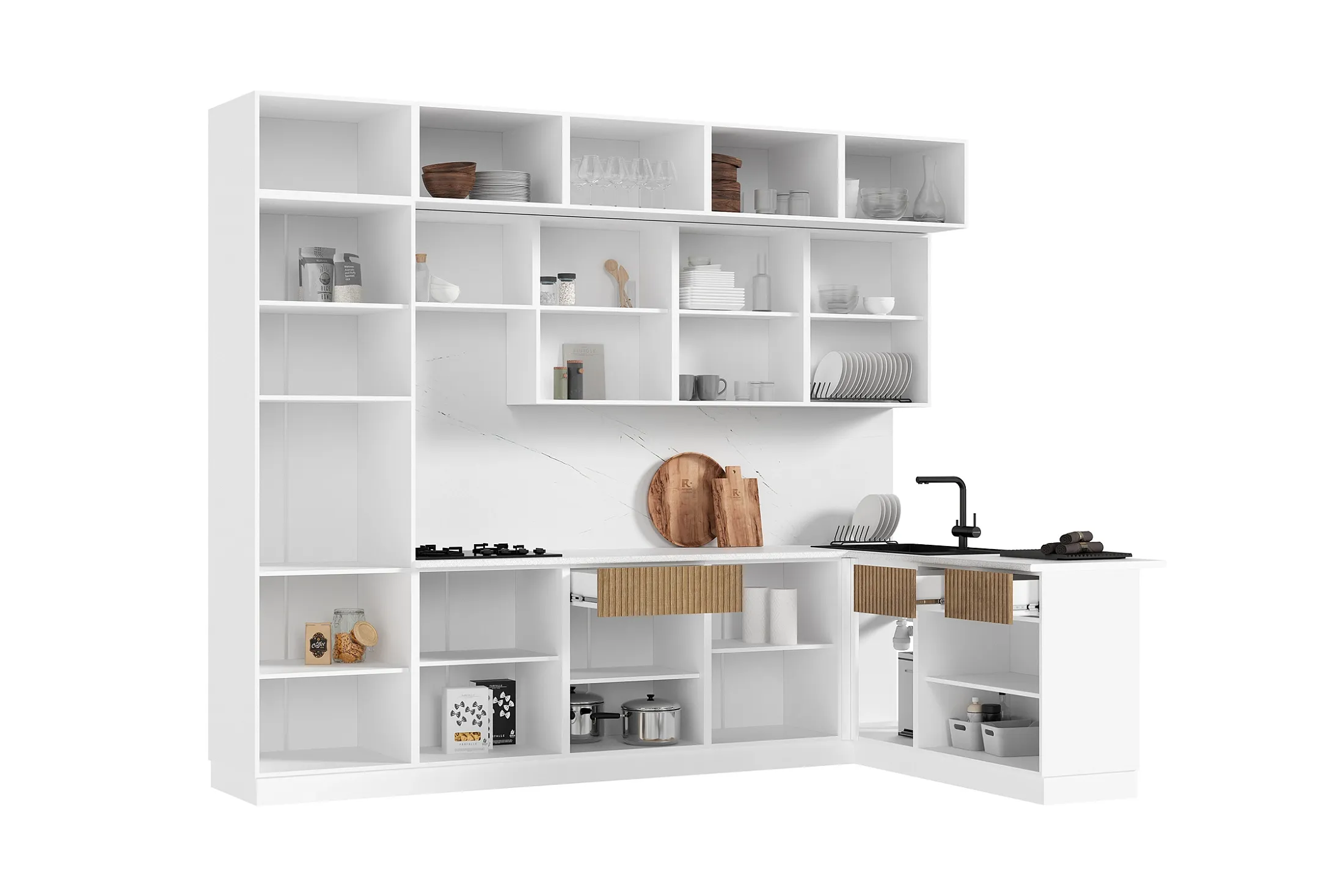 Высота нижних кухонных модулей указана без учета толщины столешницы.