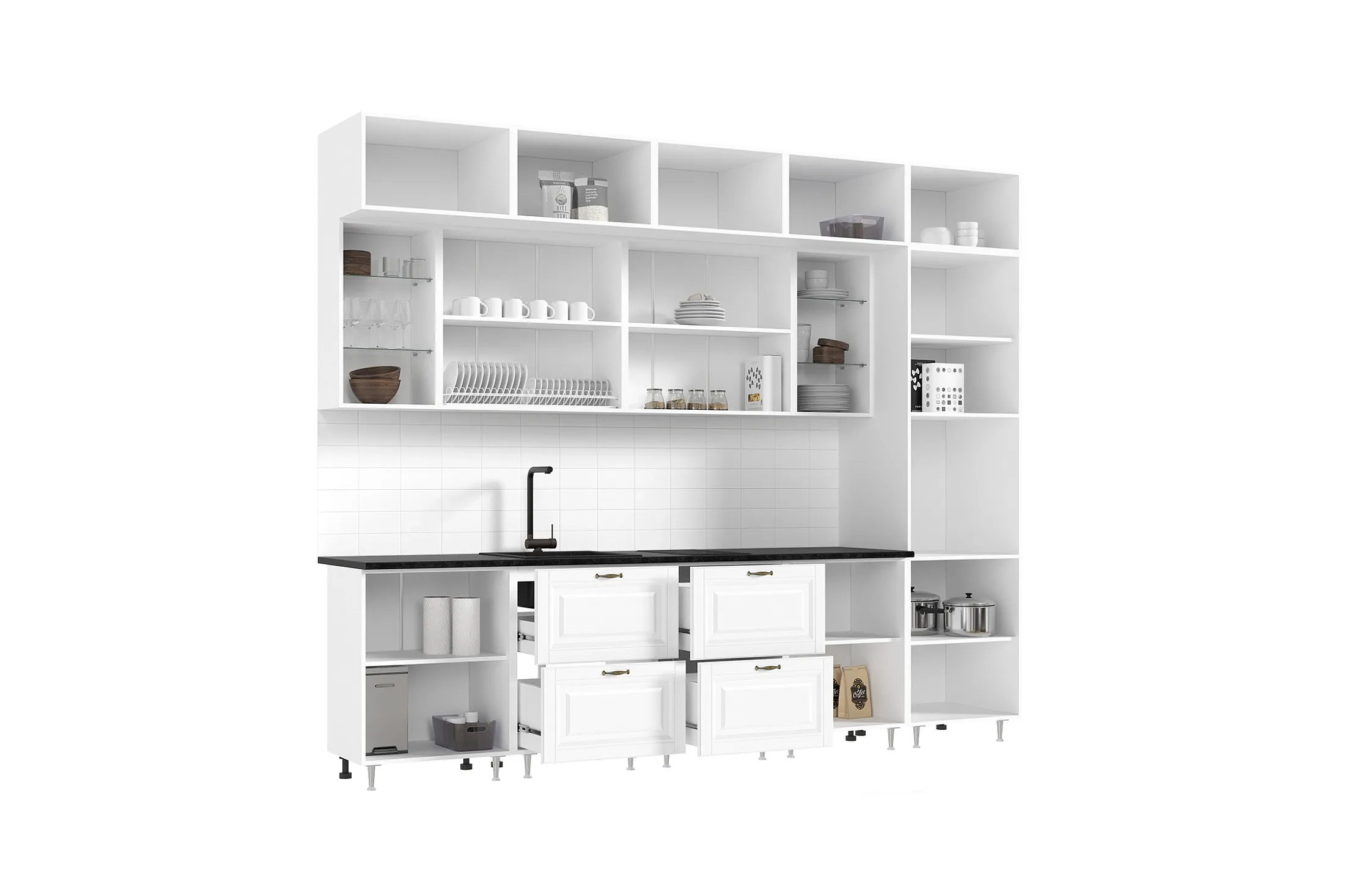 Высота нижних модулей указана с учетом высоты опор и столешницы.