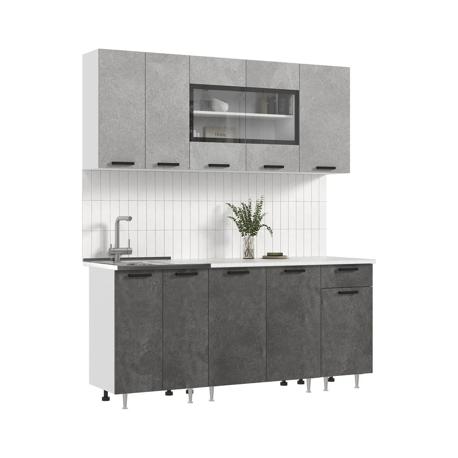 Глубина верхних и нижних шкафов указана с учетом толщины фасада.