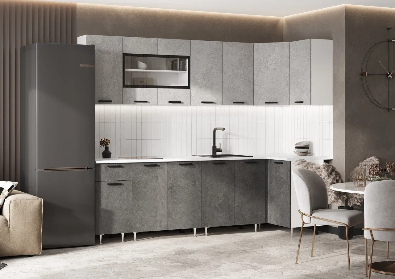 Высота нижних модулей указана с учетом столешницы.