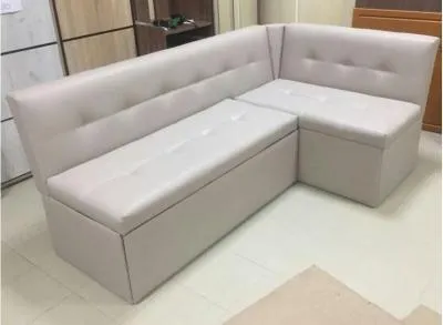 Современный Кухонный диван со спальным местом, будет красиво смотреться в современной кухне. Диван имеет подъемную секцию на газ-лифте, а так же выдвижной ящик, что позволяет получить очень большое полезное пространство на большей площади занимаемой углом. В комплекте со специальными подушками, у вас получится большая стандартная кровать.