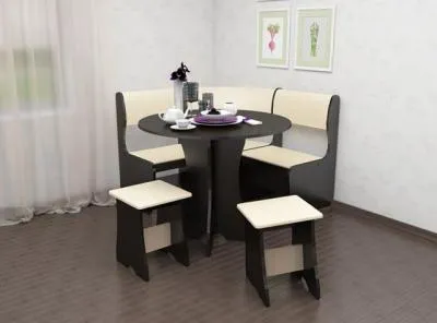В комплект кухонного уголка Андрей 1 входит угловая скамья, стол кухонный, 2 табурета.