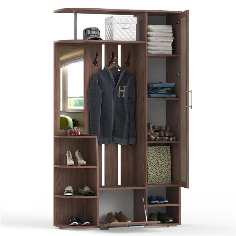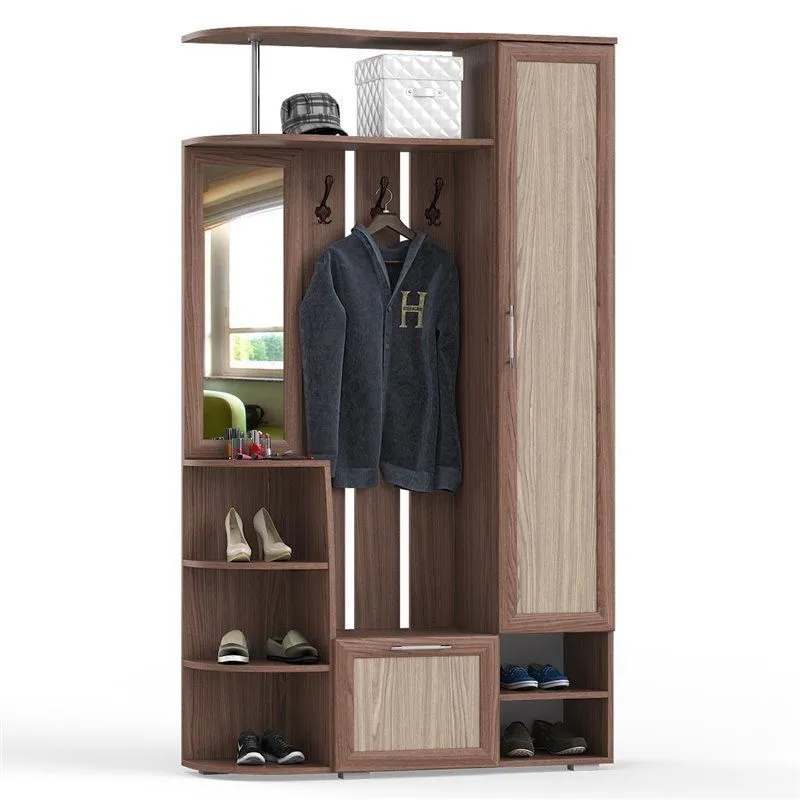 Компактный и при этом вместительный набор мебели "Ксения-2" отлично подойдет для маленькой прихожей. Он содержит не только классические крючки для одежды и покли для обуви, но и множество полок для хранения вещей.