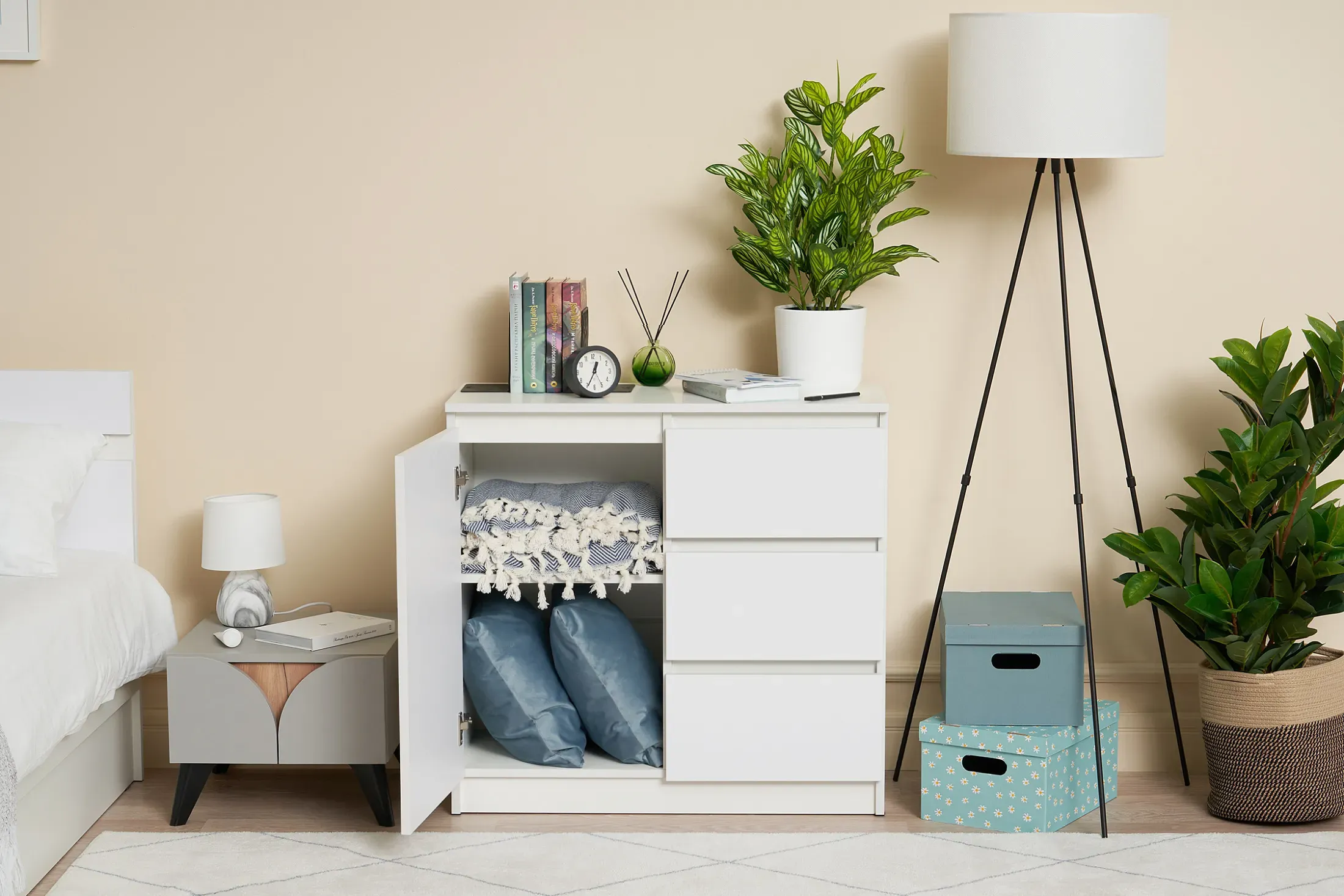 Челси Комод — модель с 3 ящиками и 1 дверью. Материал — ЛДСП.