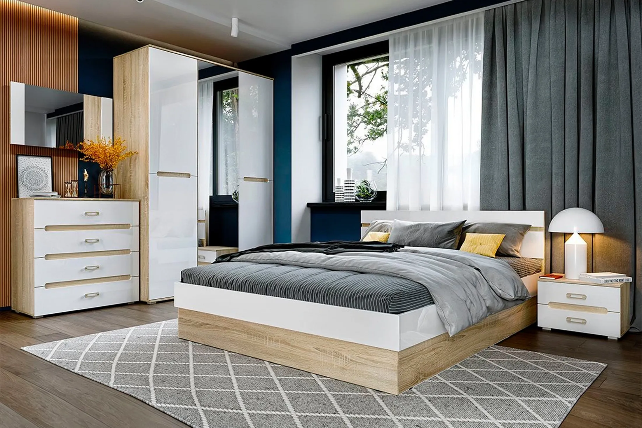 Нежный и привлекательный модульный гарнитур "Ким". Мебель, выполненная в одном стиле и цветовой гамме с интерьером, позволит вам сделать комнату особенной и неповторимой. Из представленных модулей легко можно собрать спальный гарнитур под размер вашей комнаты.