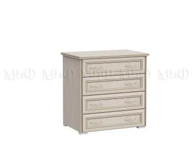 ЛДСП (корпус) и МДФ (фасад) в нежном декоре Сандал светлый. Фасады декорированы золотой патиной.