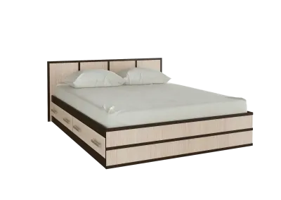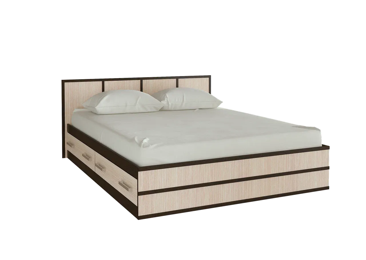 Кровать "Сакура" – строгая и элегантная двухспальная модель c чередованием светлого и темного декора. Ящики оснащены ручками цвета "Хром" со вставками "Венге".